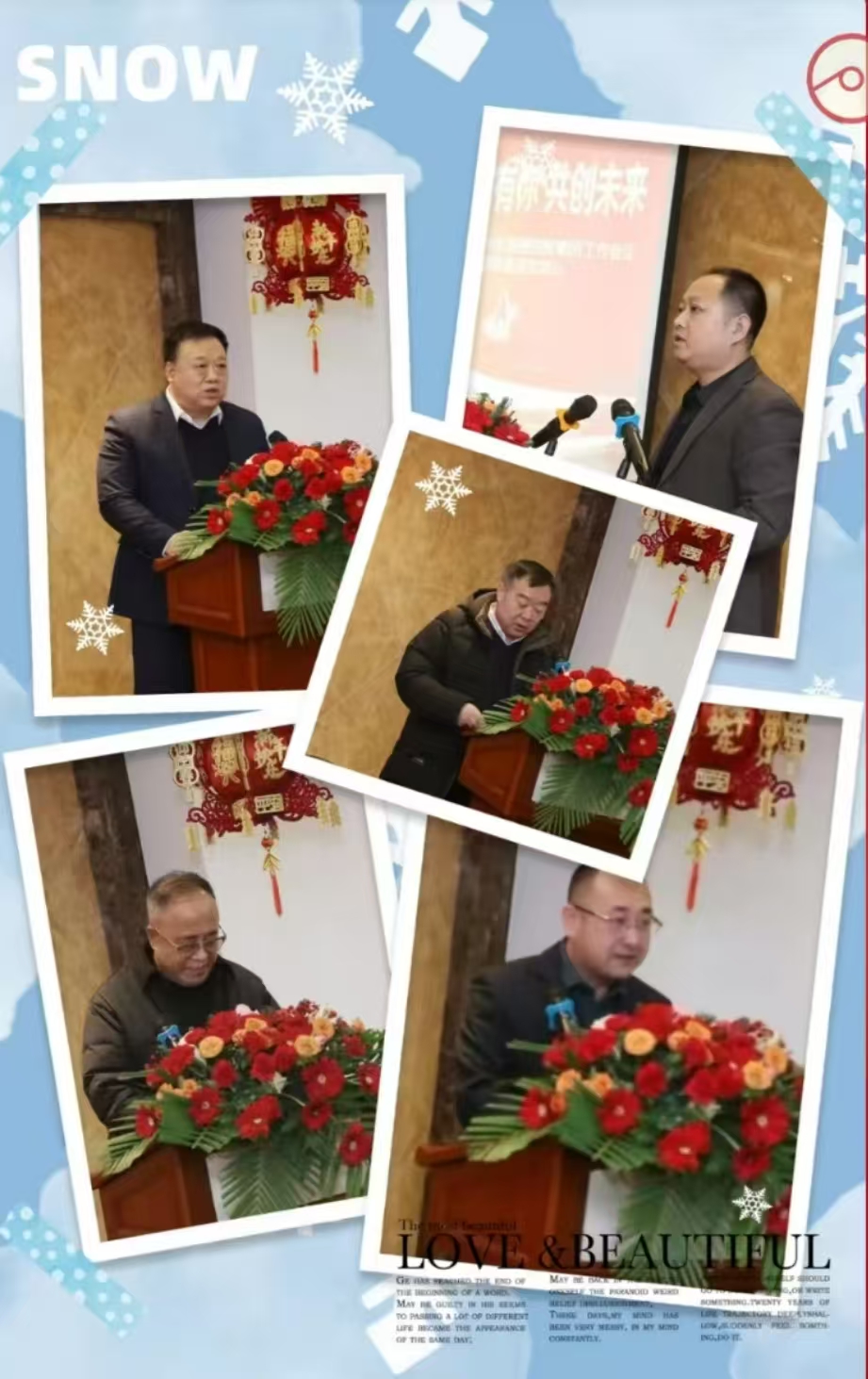 李主席強(qiáng)調(diào),面對新常態(tài)下的經(jīng)濟(jì)形勢,要盡快研究國家及行業(yè)的政策,找準(zhǔn)定位、鎖定方向,緊鑼密鼓地謀劃和布局新一年的目標(biāo):一是適應(yīng)市場所需,順勢而為,做能做成的事,堅定不移的做好目前正在發(fā)展中的業(yè)務(wù),逐步淘汰發(fā)展無望的產(chǎn)業(yè),大力發(fā)展高科技產(chǎn)業(yè),培養(yǎng)新質(zhì)生產(chǎn)力,進(jìn)入新賽道,開啟新領(lǐng)域。二是對2025年重點(diǎn)謀劃以下幾個方面。(1)實現(xiàn)企業(yè)混改,與央國企合作,與有實力的民營企業(yè)合作,強(qiáng)強(qiáng)聯(lián)合,壯大實力;(2)推進(jìn)九龍山項目合作,引進(jìn)戰(zhàn)略合伙人;(3)盤活存量項目,推進(jìn)新項目落地;(4)對中太建設(shè)集團(tuán),中太房地產(chǎn)集團(tuán)進(jìn)行戰(zhàn)略重整;(5)對系統(tǒng)金融機(jī)構(gòu)的債務(wù),與央企進(jìn)行合作,實施債務(wù)重組;(6)發(fā)展新型產(chǎn)業(yè):信息化、技術(shù)咨詢、智能化等新型現(xiàn)代業(yè)態(tài),全面進(jìn)入新賽道。三是走進(jìn)新時代,對標(biāo)高質(zhì)量發(fā)展,數(shù)字產(chǎn)業(yè)化。企業(yè)要深入研究產(chǎn)業(yè)數(shù)字化,聚焦于行動,使標(biāo)準(zhǔn)鏈,質(zhì)量鏈,數(shù)據(jù)鏈有機(jī)地融合,系統(tǒng)守正,科學(xué)出奇,這是科學(xué)的發(fā)展理念,是戰(zhàn)略也是方向。四是重視企業(yè)品牌建設(shè),提高企業(yè)知名度和美譽(yù)度,樹立企業(yè)良好的形象。五是對政策導(dǎo)向要學(xué)習(xí)研究,爭取政策支持,掌握政策信息渠道,加強(qiáng)與行業(yè)協(xié)會的聯(lián)系,向大數(shù)據(jù),云計算,數(shù)字化轉(zhuǎn)型,實現(xiàn)物聯(lián)網(wǎng)與數(shù)字化的結(jié)合,實現(xiàn)生產(chǎn)過程的數(shù)字化管理和智能控制,提高管理的科技含量。最后,在新春佳節(jié)即將來臨之際,李主席代表中共中太集團(tuán)黨委和董事局向在座的各位,表示節(jié)日的祝福。